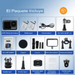 Cámara Ultra HD 4K 20MP con estabilización, 40M a prueba de agua, micrófono externo, control remoto y funciones avanzadas. Captura videos en 4K, fotos en 20MP y disfruta de actividades extremas con calidad profesional.