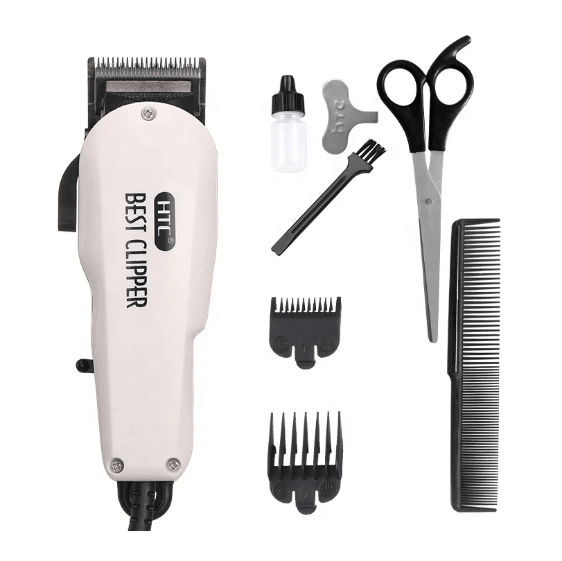 HTC Best Clipper para uso profesional y personal. Original CT-108 Maquinilla de afeitar muy potente y resistente Cuchillas autoafilables de acero al carbono Cordón grueso Velocidad ajustable y palanca de la cuchilla El paquete Incluye Maquinilla de afeitar x1 Tijeras x1 Peine de aseo x2 Cepillo de limpieza de aceite lubricante de 3 mm y 10 mm Tecla de ajuste de velocidad ManualHTC