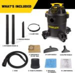 Esta aspiradora para seco/mojado STANLEY, SL18116P, es ideal para todas las necesidades de su tienda. Diseñada con un contenedor de polietileno de 6 galones, 4.0 pico MAX HP, un cable de alimentación de 10 pies y tecnología de puerto de soplador trasero, esta aspiradora es una pieza esencial del equipo para todas sus necesidades de limpieza. La aspiradora de taller de 6 galones cuenta con ruedas giratorias que facilitan el movimiento y tiene un diseño de puerto de soplador trasero. Es duradero y resistente y está hecho para un uso prolongado. Tiene un potente motor de servicio pesado para un rendimiento líder en la industria y proporciona la máxima potencia de succión para recolección de servicio pesado.