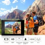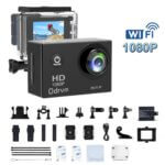 Paquete de accesorios: La cámara deportiva incluye accesorios de montaje se puede montar fácilmente en cascos, bicicletas, tablas de surf, coches y otros objetos. Puedes divertirte con tus deportes favoritos