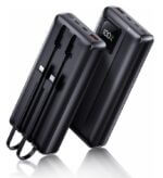 • El banco de energía tiene un cable de salida tipo C 5V3.1A incorporado y un cable de salida para iPhone. No hay necesidad de cables externos desordenados y propensos a enredos, el cargador de batería puede cargar directamente varios dispositivos de forma rápida y cómoda con los dos cables integrados. Puedes compartir la comodidad del banco de energía con varios amigos al mismo tiempo.