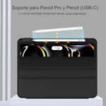 La funda cuenta con una ranura lateral empotrada diseñada para el Pencil Pro y Pencil con conector USB-C, permitiendo una carga magnética eficiente. Además, incluye un cierre magnético que mantiene tu lápiz seguro y siempre a la mano, lo que la convierte en una opción ideal para artistas, estudiantes y profesionales.