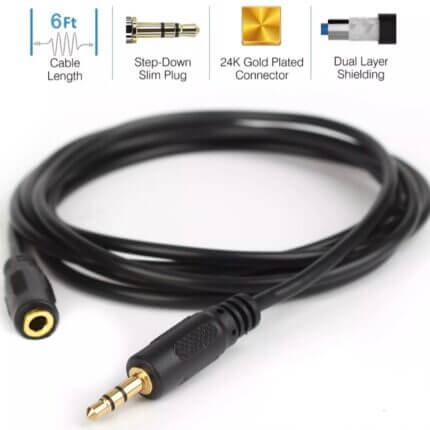 Cable de alto rendimiento: el estuche de este cable de extensión para auriculares está hecho de material metálico de primera calidad, duradero y elegante. El exterior trenzado del extensor de 3,5 mm es bastante robusto y flexible, lo que hace que los cables estén libres de enredos y sean duraderos.