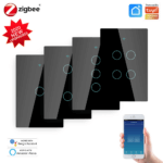 Interruptor Inteligente, con Panel Touch de Vidrio, con Conexion WiFi (2.4GHz ) + RF ( 433MHz ) y Bluetooth. Compatible con APP Tuya / Smart Life y con Amazon Alexa, Google Home, Siri.