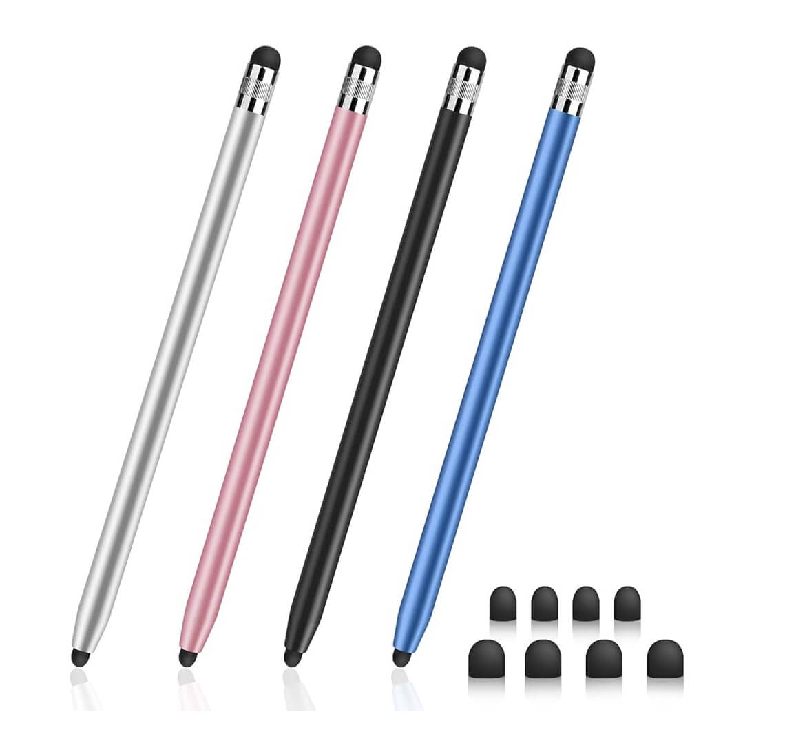 bolígrafo diseñado específicamente para su uso en pantallas táctiles. Típicamente fabricados con puntas de goma conductora o plástico duro capacitivo, los lápices ópticos son sustitutos más delgados y precisos de las yemas de los dedos.