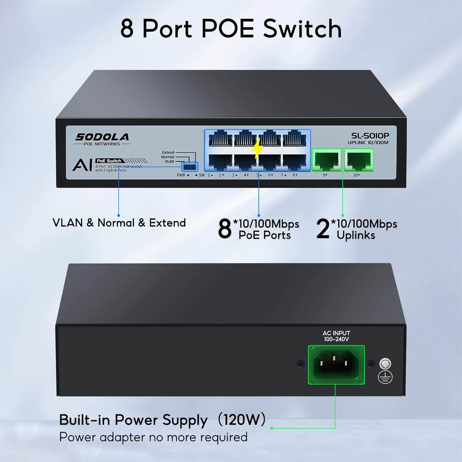 - 【Compatibilidad múltiple】El conmutador PoE de 10 puertos Sodola puede usarse en escenarios ampliamente utilizados, como cámaras IP, puntos de acceso inalámbrico, dispositivos de redes informáticas, etc. Nos comprometemos a brindar un servicio de reemplazo de productos sin reparación dentro de 1 año, más preocupación por su uso. experiencia.